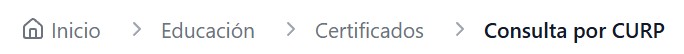❮ ❯ Consulta de Certificados Educativos Ingrese la CURP para consultar la validez de un certificado educativo BUSCAR CURP NO ENCONTRADO